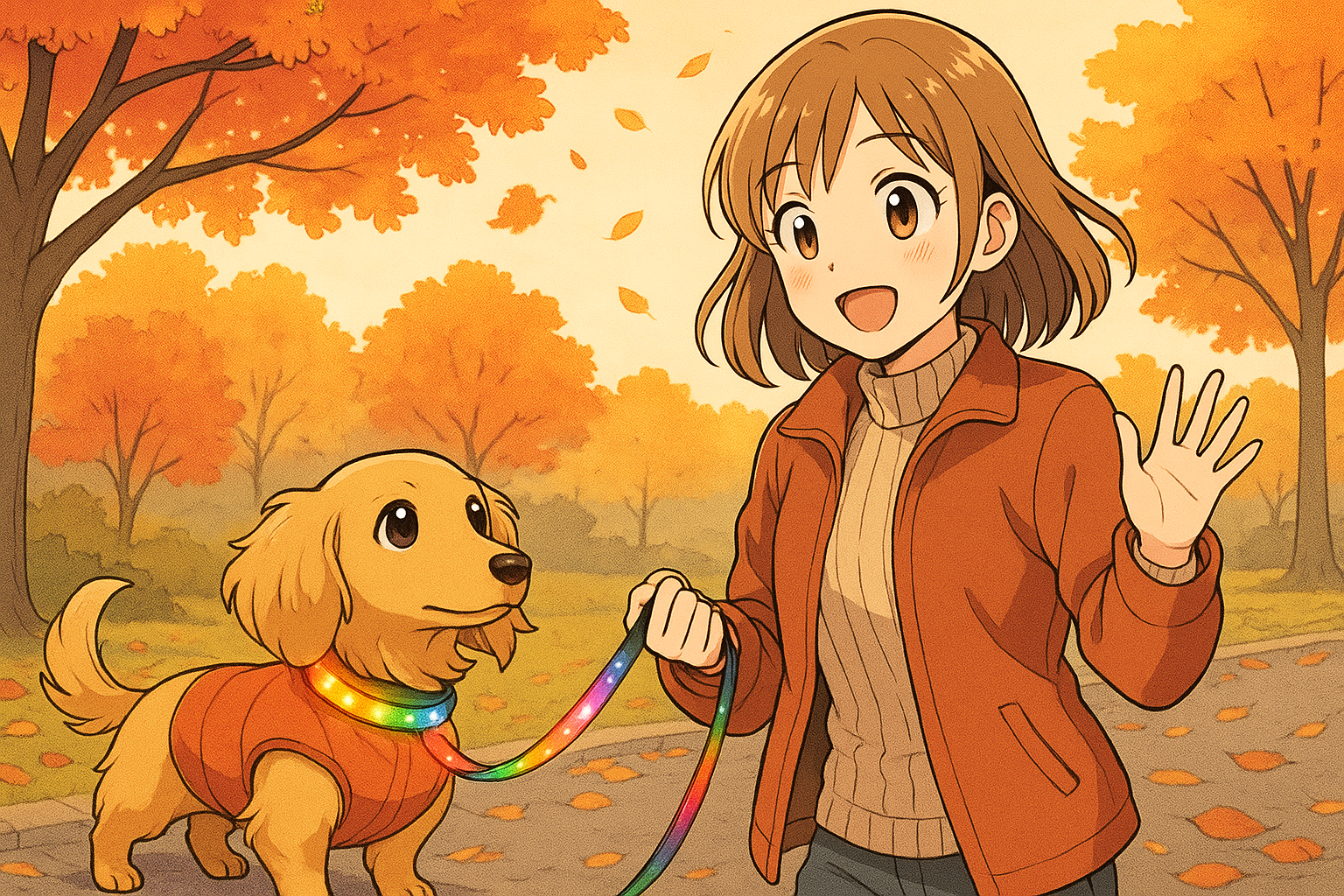 愛犬の命を守るためにも、秋の夜散歩は光るアイテムを取り入れましょう。